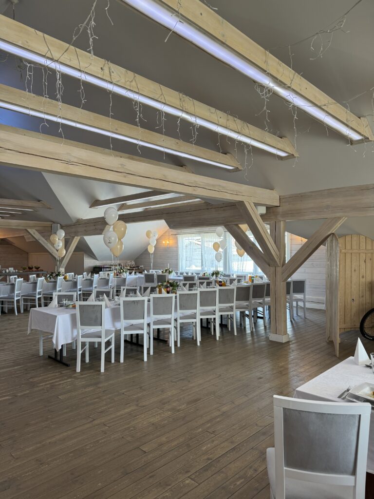 Cenisz proste formy, nieskomplikowaną, aczkolwiek efektowną i gustowną estetykę? Chcesz zorganizować wesele w Brzezinach? To pomieszczenie, które mieści aż 130 osób, jest dla Ciebie!